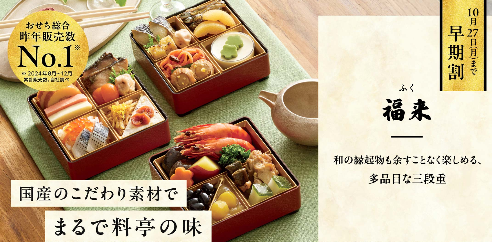 国産素材を中心に、添加物を最小限に抑えたおせちは、家族の健康と笑顔を守る新年の食卓にぴったりです。